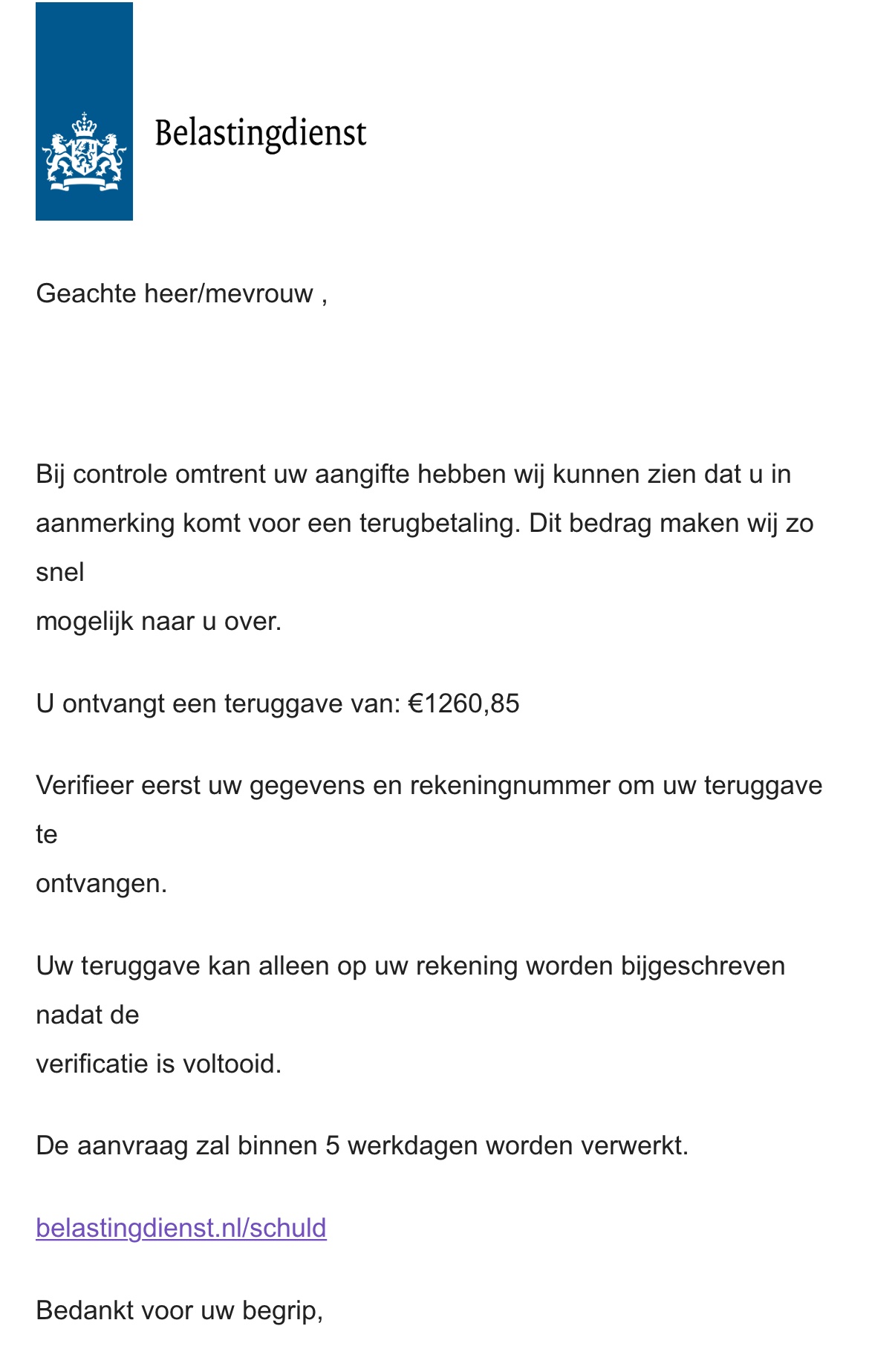Dit jaar ontving ik 2 spamberichten van de Belastingdienst, zie beide afbeeldingen.