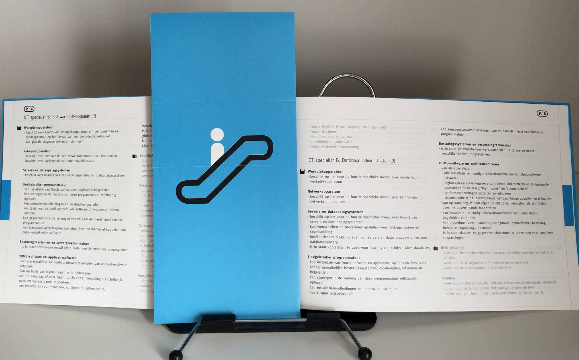 Van verschillende kanten werd ik gevraagd om mee te denken over de loopbaanmogelijkheden. Dankzij mijn lerarenopleiding heb ik verstand van leren, vaardigheden en processen. Al snel kwamen we terecht in de vaktermen van HR-specialisten en recruiters. Net als in een catalogus beschreven we per functie of rol vaardigheden, competenties, opleidingseisen. We hebben er een mooi vormgegeven folder en een boekje over gemaakt.